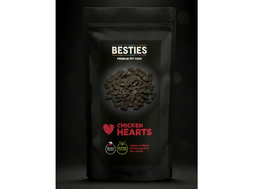 Prémiová receptura z čistých kuřecích srdíček obohacená o výběr superpotravin na podporu zdravého srdce a celkové vitality psa.